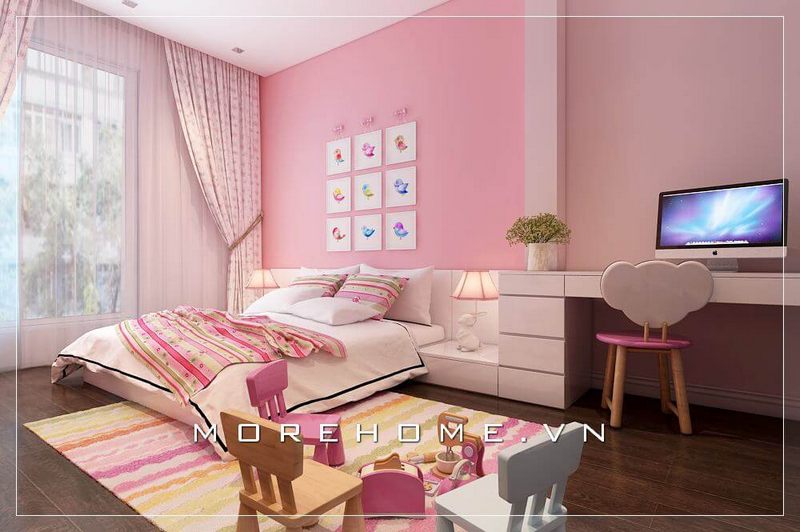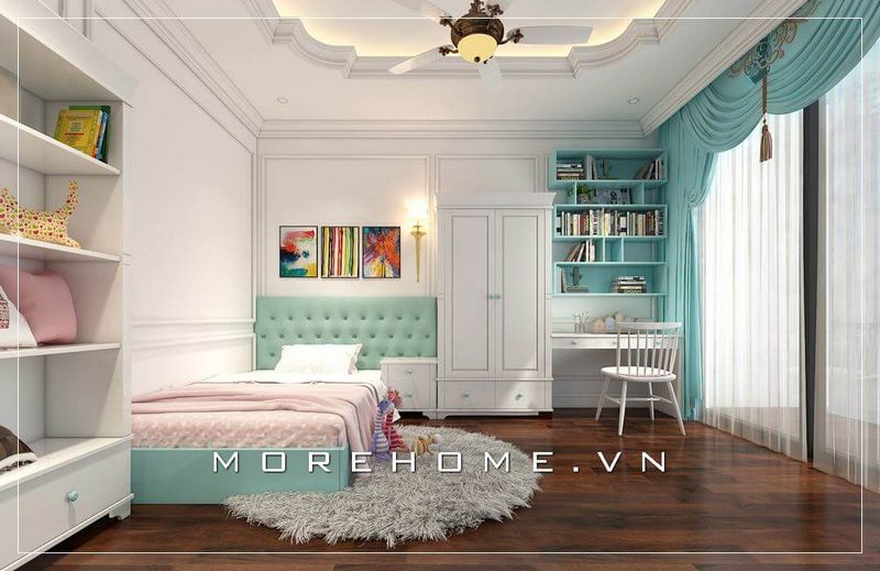 Gợi ý tới bạn mẫu giường ngủ gỗ công nghiệp hiện đại cho phòng ngủ 2 bé gái