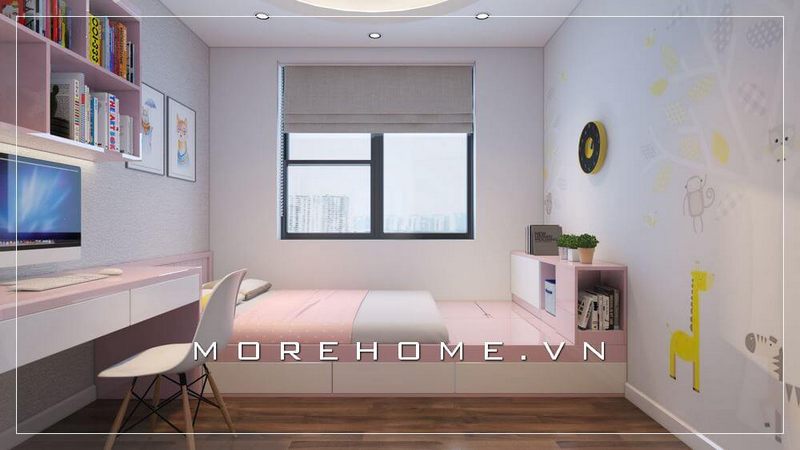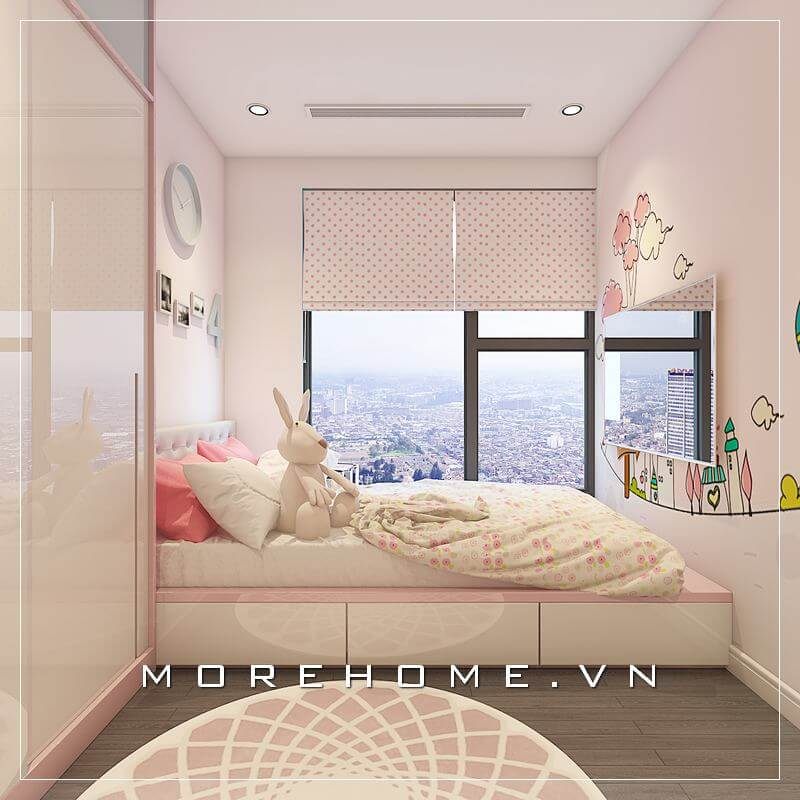 Mẫu giường ngủ bé gái hiện đại có ngăn kéo phía dưới tiện dụng giúp cho căn phòng rộng thoáng, luôn gọn gàng