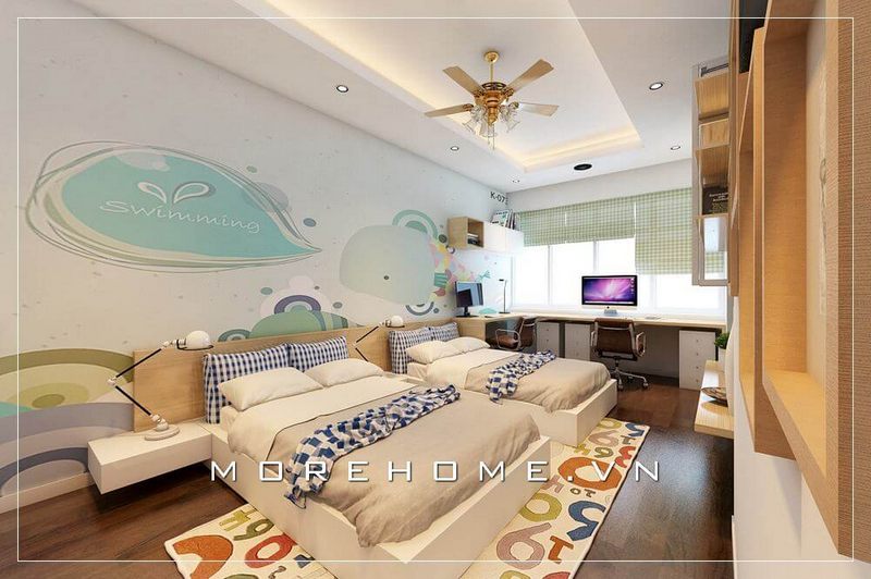 Mẫu giường ngủ trẻ em phong cách hiện đại, trẻ trung tại chung cư cao cấp