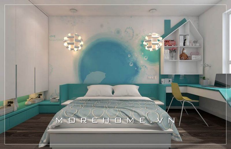 Mẫu giường ngủ bé trai hiện đại, tone màu xanh ấn tượng tạo điểm nhấn ấn tượng cho cả không gian nghỉ ngơi của bé